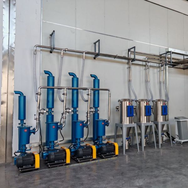 中央供料系統(tǒng)采用一臺(tái)機(jī)一根管,密封式回路設(shè)計(jì)方式,保證整個(gè)系統(tǒng)運(yùn)行穩(wěn)定,絕無塑膠回潮、堵料現(xiàn)象發(fā)生。它配合中央干燥機(jī)(除濕機(jī))系統(tǒng)使用,可使干燥空氣對(duì)原料進(jìn)行再次干燥,防止干燥后的塑膠回潮,同時(shí)在每個(gè)輸送循環(huán)后對(duì)輸送管進(jìn)行清理,確保管道內(nèi)沒有殘料。在避免原料回潮的同時(shí)也保證加入注塑機(jī)中原料一致性,在真空負(fù)壓同進(jìn)作用下,原料中原有的粉塵經(jīng)過過濾器(集塵器)系統(tǒng)濾出,有利提高產(chǎn)品質(zhì)量。